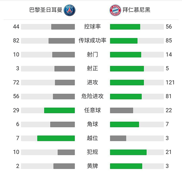 全场比赛结束,巴黎主场0-1总比分3-3拜仁,巴黎凭借客场进球晋级。