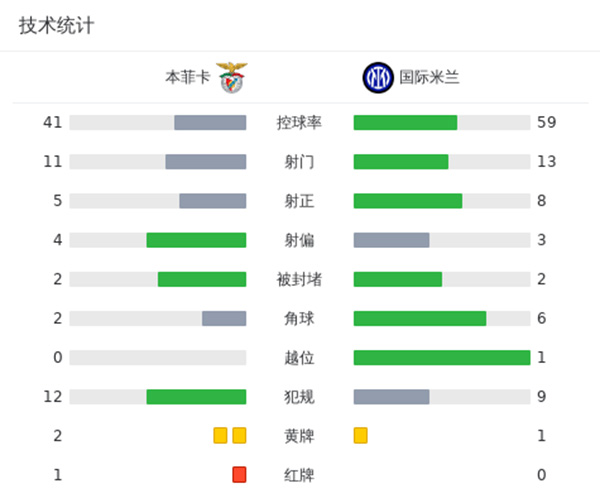 第5分钟,安东尼奥-席尔瓦右路长传给到禁区,滕斯泰特头球回做,若昂-马里奥跟上直接左脚推射破门!本菲卡1-0国际米兰↓