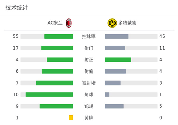 第10分钟,卡拉布利亚禁区内放倒吉滕斯,主裁再次判罚点球,这次罗伊斯主罚命中,米兰主场0-1落后↓