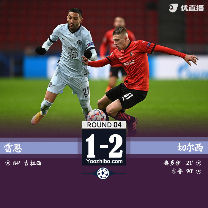 欧冠简报:切尔西2-1雷恩 奥多伊破门吉鲁绝杀