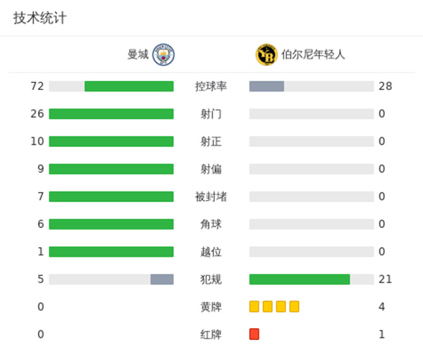 来源:直播车11-08 08:03 直播车讯 :北京时间11月08日欧冠小组赛第4轮,曼城主场对阵伯尔尼年轻人。上半场,努内斯造点,哈兰德主罚命中。半场结束前,格拉利什传球,福登抹入禁区小角度射门得分。下半场,哈兰德禁区外轰入世界波。随后,伯尔尼年轻人球员劳珀对阿克犯规吃到第二张黄牌被罚下。全场比赛结束,曼城主场3-0轻取伯尔尼年轻人,提前两轮小组出线。