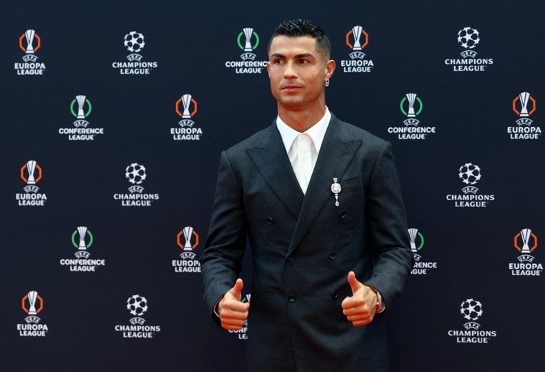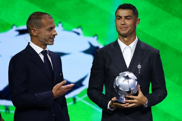来源:直播车08-30 15:58直播车讯 北京时间8月30日凌晨,39岁的葡萄牙巨星C罗作为嘉宾,参加了欧冠抽签仪式,他还领取了欧冠历史最佳射手奖,该奖项由欧足联主席切费林亲自为他颁发。而随后,C罗也动情发表了获奖致辞。