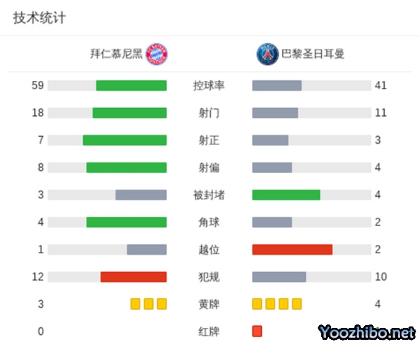 来源:直播车11-27 07:10 直播车讯 北京时间11月27日欧洲冠军联赛小组赛的较量中,拜仁慕尼黑迎战巴黎圣日耳曼。上半场基米希传穆西亚拉转身抽射被萨福诺夫扑出,随后萨内前插直接打门再次被扑,基米希角球直接转向球门,萨福诺夫击球不远,金玟哉头球破门收获欧冠首球,下半场登贝莱铲抢犯规,两黄变一红被罚下,穆西亚拉禁区调整推射被萨福诺夫扑到立柱弹出,全场战罢,最终拜仁慕尼黑以1-0战胜巴黎圣日耳曼,取得了比赛的胜利。