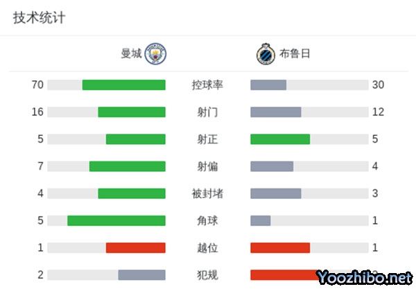 第45分钟,布鲁日的反击机会,努内斯鲁莽上抢冒失伸脚被过,尤特格拉突破后传中,奥涅迪卡跟进推射破门,曼城0-1布鲁日!