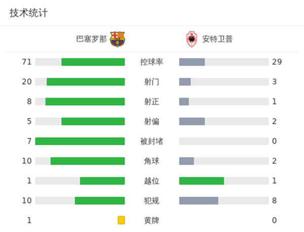 巴萨5-0大胜安特卫普 菲利克斯2射1传莱万加维破门