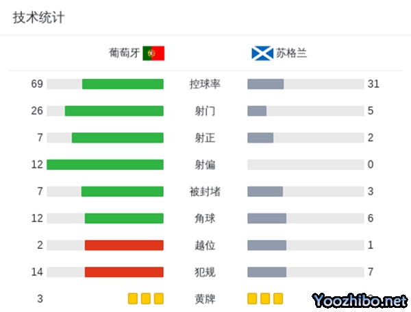 葡萄牙2-1逆转苏格兰 C罗替补两中柱+绝杀B费贴地斩破门