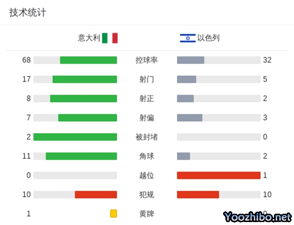 第38分钟,意大利获得点球!托纳利禁区反抢时被佩雷茨放倒裁判判罚点球,雷特吉主罚点球破门,意大利1-0以色列。