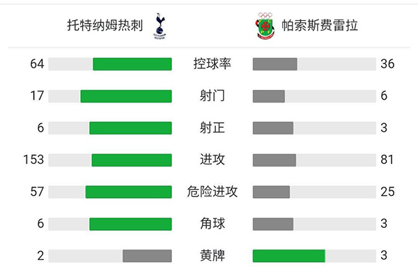 来源:直播车08-27 09:52 直播车讯:北京时间8月27日02:45,欧协联附加赛次回合,热刺主场迎战帕索斯费雷拉(首回合热刺0-1落败)。上半场凯恩梅开二度,希尔献助攻外加中柱;下半场洛塞尔索任意球造成安图内斯乌龙。最终,热刺3-0帕索斯费雷拉,总比分3-1晋级正赛。