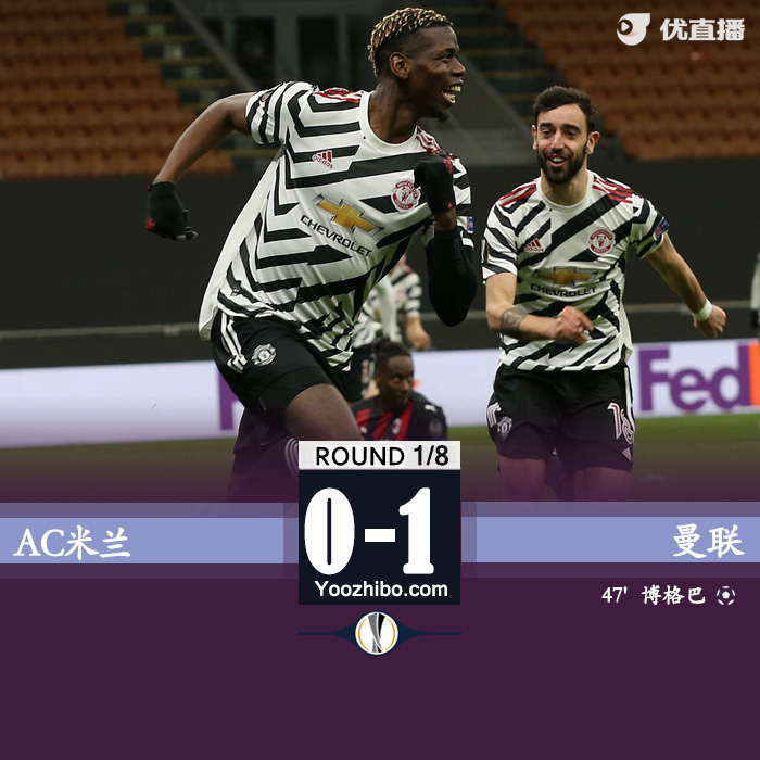 直播车3月19日讯 北京时间3月19日凌晨4点,20-21赛季欧联杯1/8决赛次回合,曼联客场挑战AC米兰。上半时双方没有进球,克鲁尼奇失良机,萨勒马科尔斯远射被扑。下半时博格巴替补建功,伊布头槌攻门被扑出。最终,AC米兰0-1曼联,总比分曼联2-1米兰晋级欧联杯八强。