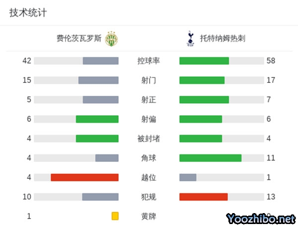 第22分钟,费伦茨瓦罗斯后场连续出现失误,萨尔小角度低射破门,热刺1-0费伦茨瓦罗斯。