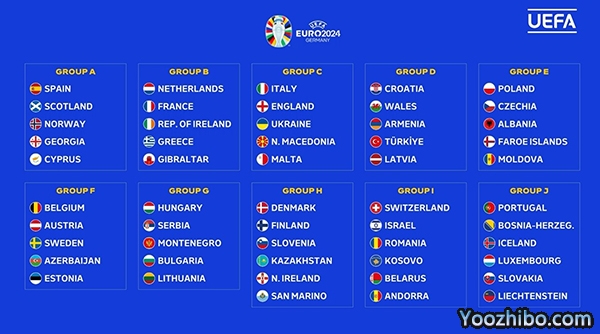每个小组的前两名获得2024年欧洲杯参赛资格,剩下3个参赛资格将通过附加赛决出。欧洲杯预选赛将在2023年3月至11月进行,3场附加赛将在2024年3月举行。 未通过预选赛获得欧洲杯资格的球队,能否获得欧洲杯附加赛资格,将根据2022-23赛季欧国联表现而定。2023年12月,将在汉堡举行2024欧洲杯正赛分组抽签仪式。