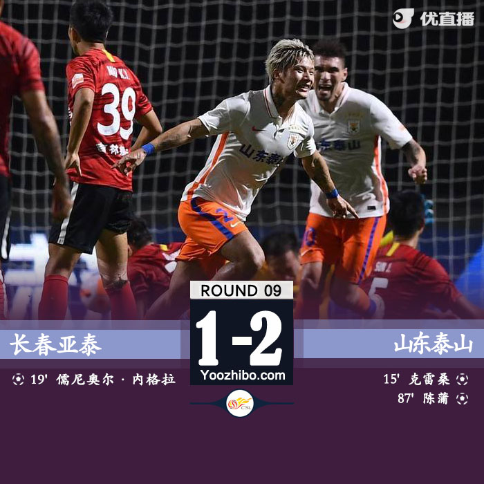 直播车7月6日讯 北京时间7月6日晚19点30分,2022赛季中超第一阶段第9轮展开角逐,长春亚泰对阵山东泰山。上半场克雷桑连场破门,儒尼奥尔扳平比分,下半场费莱尼头球中框,陈蒲替补绝杀。最终山东泰山2-1战胜长春亚泰,山东取得三连胜,亚泰四轮不败遭终结。