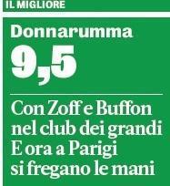 《米兰体育报》为多纳鲁马在本届赛事中的表现打出9.5分,他们评价道:“多纳鲁马经历了一届完美的大赛,他已经迈入门神级别,与佐夫和布冯处于同一行列。巴黎圣日耳曼现在正在搓着手等待他的到来。”