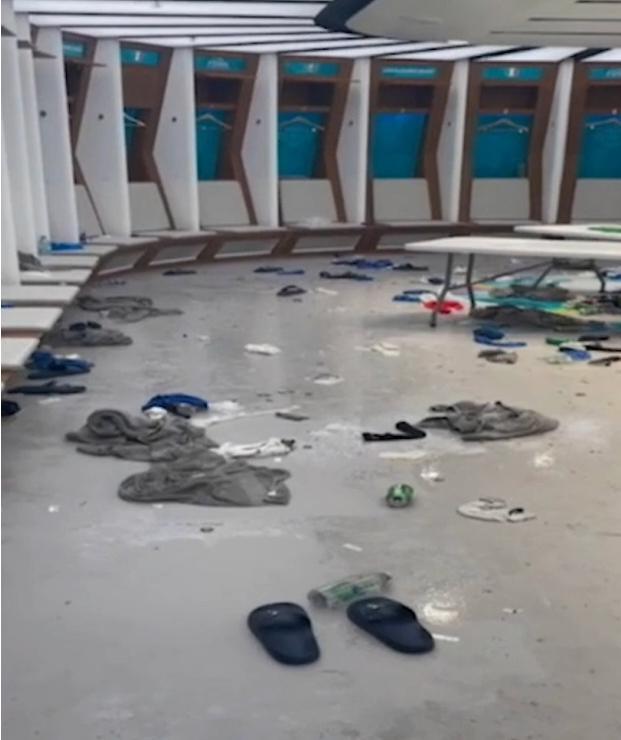 素质差?英媒晒意大利更衣室:一片狼藉垃圾遍地