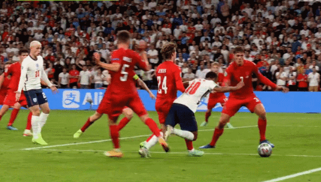 这场比赛最大的争议毫无疑问就是加时赛点球的判罚,当时斯特林在禁区内摔倒,裁判果断给出了点球,但是慢镜头显示斯特林在倒地的瞬间,对手丹麦的球员收腿了,并未碰到他,所以这个球很有可能是斯特林的故意假摔造成点球,不过当值裁判没有选择看var,而是果断给了点球,这也才有了凯恩通过点球的补射打进了全场比赛最后一个进球。