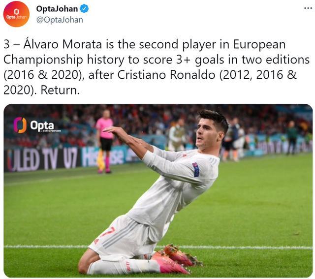 但据统计,莫拉塔职业生涯期间已在欧洲杯中打入6球,他现在已经超越托雷斯,成为西班牙队史欧洲杯进球最多的球员。
