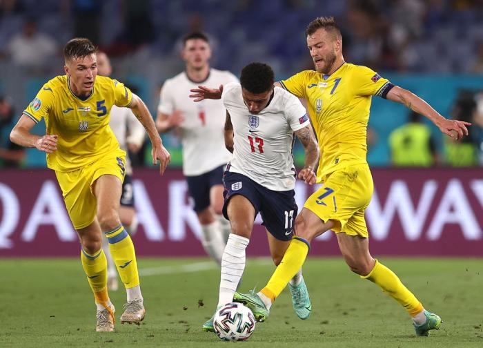 在英乌大战中,索斯盖特选择了桑乔,而不是此前表现出色的维拉队长格拉利什。上半场桑乔的表现便征服了英格兰队的名宿,英国BBC的莱因克尔、阿兰·希勒和里奥·费迪南德一致表扬他,其中,费迪南德甚至称桑乔踢球犹如舞蹈。