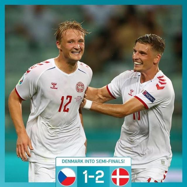 直播车讯北京时间7月4日,丹麦2-1捷克挺进4强,丹麦成为欧洲杯首支输掉两场小组赛仍晋级4强的球队。