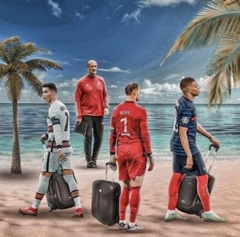 至于世界杯冠军法国队,则是爆出大冷门。他们在点球大战被瑞士男足淘汰,耻辱性的打道回府。而在F组全军覆没之后,匈牙利队主帅马可-罗西在社交账号上上传了一张他和C罗、诺伊尔和姆巴佩一起的图片,并且附文道“咱们海滩见”表示现在大家可以一起去度假了。