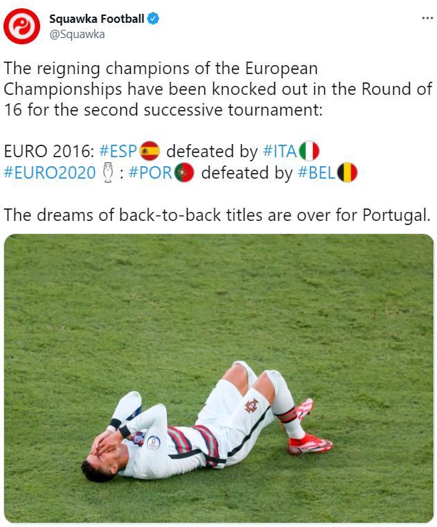 直播车讯 今天凌晨,欧洲杯卫冕冠军葡萄牙遭到比利时淘汰,现在欧洲杯已经连续两届出现卫冕冠军止步16强的局面。