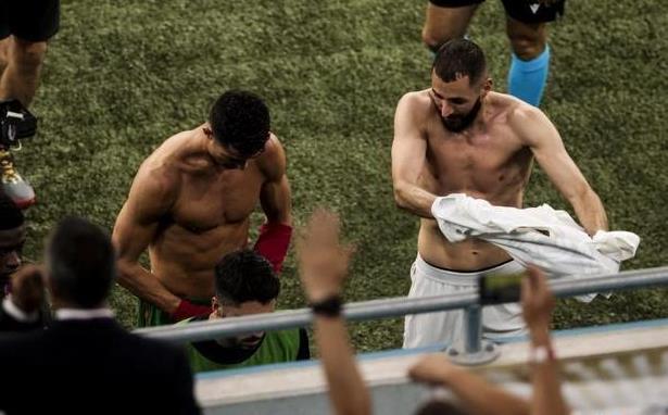场上玩命的对抗,C罗和本泽马为各自的球队打进了两个进球,最终两支球队达成了2:2平,握手言和。值得一提的是,重逢的这对好兄弟也是按耐不住内心,在中场休息的时候,两人就早早地完成了球衣交换。