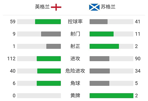 全场比赛结束,英格兰0-0闷平苏格兰。