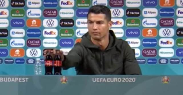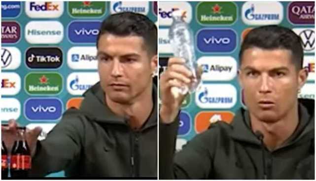 在欧洲杯葡萄牙小组赛首战与匈牙利的赛前发布会上,作为国家队队长的C罗与主帅桑托斯携手出席。而C罗刚落座便对桌上的两瓶可乐表露出不快,并将一瓶零度的和一瓶普通的可乐移到一边。留下一瓶矿泉水,还向镜头示意了一下,表示自己只喝矿泉水。