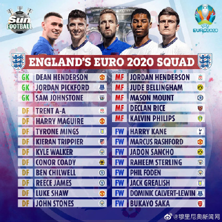 查看更多:英格兰队欧洲杯26人大名单大名单及赛程一览