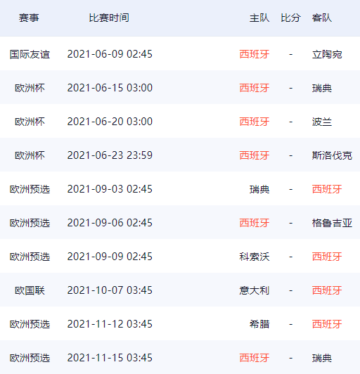 西班牙队欧洲杯26人球员大名单及赛程一览