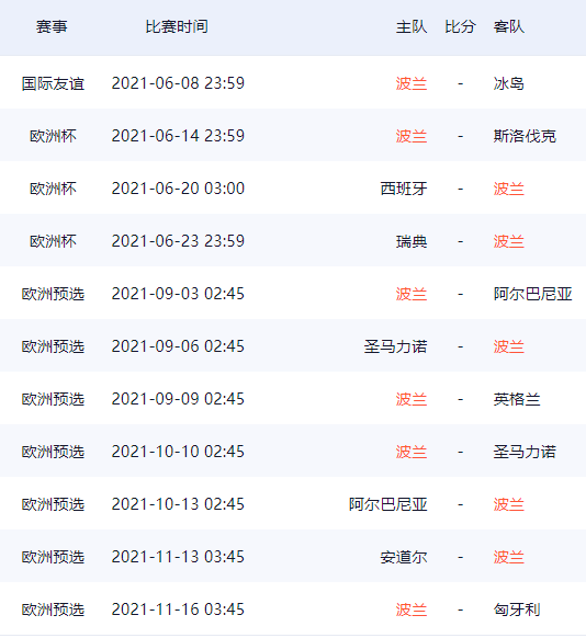 来源:直播车06-06 11:11 由莱万多夫斯基领衔的波兰队在预选赛中并未遇到太多挑战。他们与奥地利、北马其顿、斯洛文尼亚、以色列和拉脱维亚共同分在G组,在前4轮豪取全胜的情况下,球队在面对斯洛文尼亚的比赛中意外翻车,客场0-2负于对手。紧接着回到主场又与奥地利战成0-0的平局,连续两轮不胜。然而重整旗鼓的波兰铁骑随后再次迎来四连胜,并在主场3-2复仇斯洛文尼亚,以8胜1平1负积25分的战绩力压19分的奥地利以小组头名晋级。