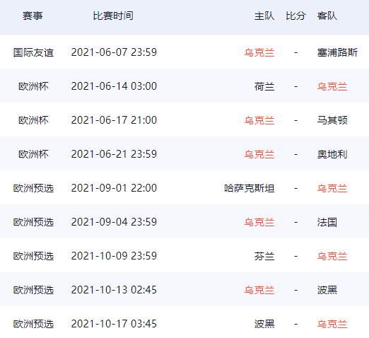 乌克兰队欧洲杯26人球员大名单及赛程一览