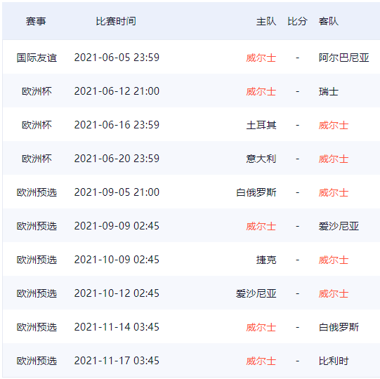 威尔士队欧洲杯26人球员大名单及赛程一览