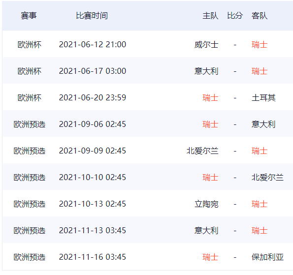 瑞士队欧洲杯26人球员大名单及赛程一览