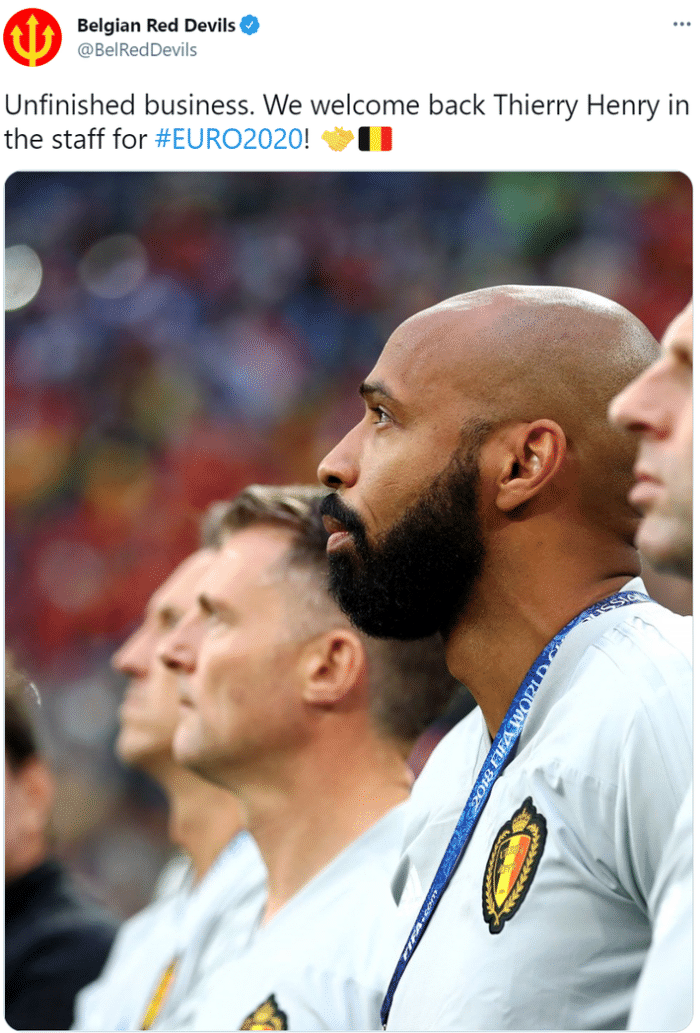直播车讯 据比利时国家队官方消息,法国名宿亨利已经回归比利时国家队教练组,将参与欧洲杯。