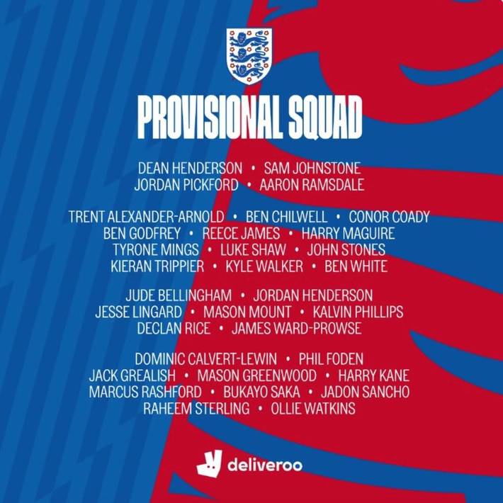 前场:勒温、福登、格拉利什、格林伍德、凯恩、拉什福德、萨卡、桑乔、斯特林、沃特金斯
