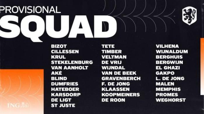 来源:直播车05-14 19:53直播车讯北京时间5月14日,荷兰公布34人的欧洲杯集训名单,范戴克无缘,德容领衔,范德贝克入选。