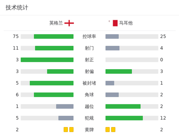 英格兰2-0马耳他 凯恩破门福登造乌龙赖斯进球被吹
