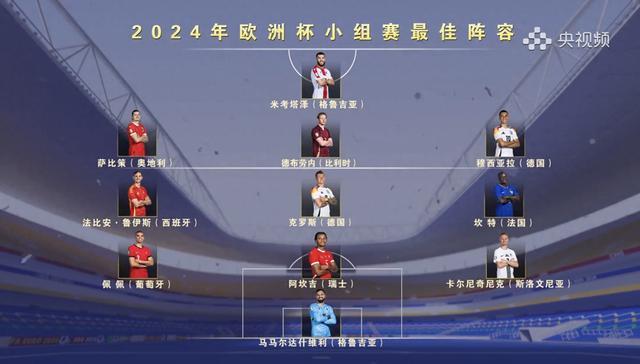 直播车讯 央视评选的欧洲杯小组赛最佳阵容公布,德布劳内、佩佩入选。