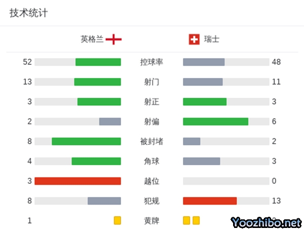 第74分钟,沙尔右路禁区外直塞,恩多耶跟进低平球传中,斯通斯前点解围踢呲,恩博洛后点抢点破门,瑞士1-0英格兰。
