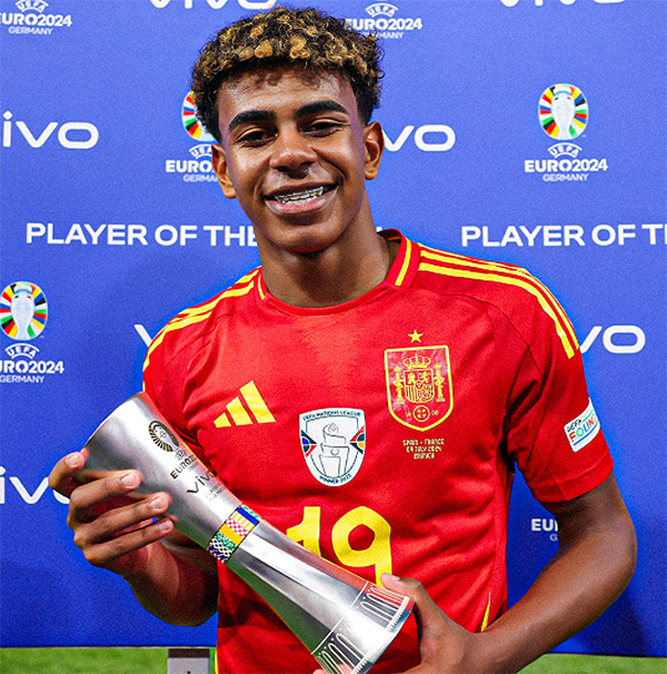 赛后,西班牙队的天才少年亚马尔当选MVP,这场击败法国队的比赛中,亚马尔的世界波帮助西班牙队扳平比分,以16岁362天的年龄成为欧洲杯最年轻进球球员。同时当赛后庆祝的时候,镜头给到亚马尔,他霸气宣言向着摄像机喊着:“说吧!现在说吧,就现在”。