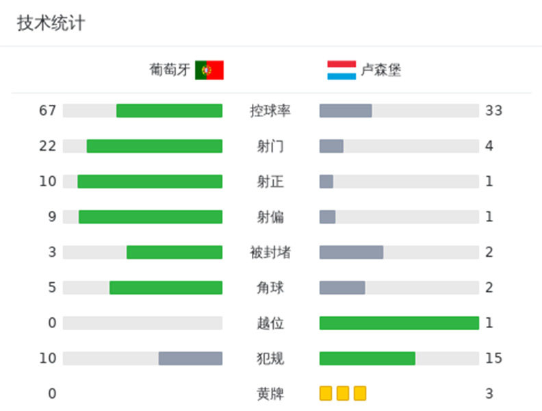 查看:葡萄牙vs卢森堡 全场录像 技术统计: