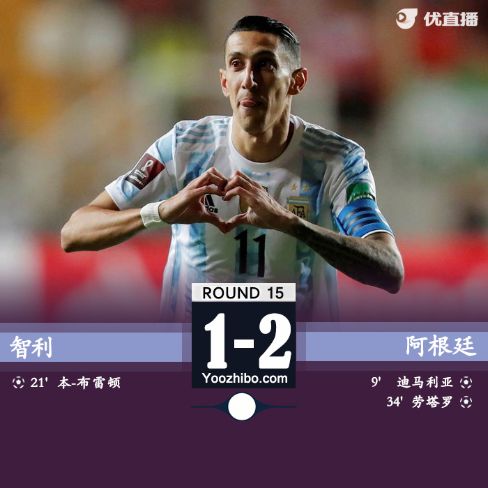直播车1月28日讯 北京时间1月28日早晨8时15分,2022世界杯南美区预选赛第15轮展开角逐,阿根廷做客对阵智利。上半场,迪马利亚世界波远射破门首开纪录,布里尔顿-迪亚兹扳平比分,随后劳塔罗破门。阿根廷半场2-1领先智利。下半场双方均无建树,最终阿根廷客场2-1击败智利。此役战罢,阿根廷在本次世预赛9胜5平保持不败,继续排名南美区第二位。