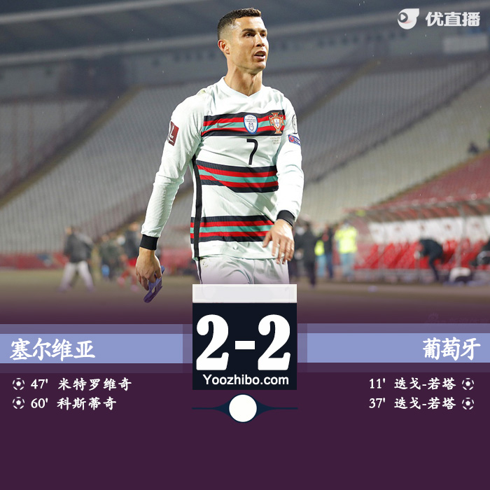 直播车3月28日讯 北京时间3月28日凌晨3点45分,世预赛欧洲赛区A组第2轮展开角逐,葡萄牙客场挑战塞尔维亚。上半场若塔头球梅开二度,下半场米特洛维奇和科斯蒂奇扳平比分,米伦科维奇补时染红,C罗绝杀球遇门线悬案。最终葡萄牙客场2-2战平塞尔维亚,A组积分榜方面,塞尔维亚积4分位居榜首,葡萄牙积4分仍居第2名。