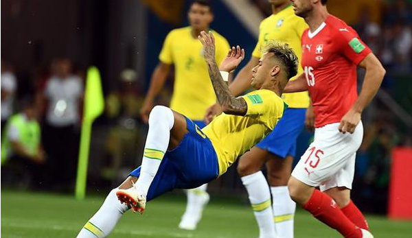 在巴西队对战瑞士队的比赛之中内马尔无疑成为了瑞士众将重点照顾的对象,内少一次次痛苦倒地的情景也令诸多球迷感到心疼,其中主裁判的判罚尺度比较松,这让贝赫拉米、舍尔等人做防守动作时显得更加凶悍,甚至有些肆意妄为,几次犯规还引起了马塞洛、库蒂尼奥等巴西队其他球员的不满,其中只要内马尔过人成功就肯定会遭到各种犯规。
