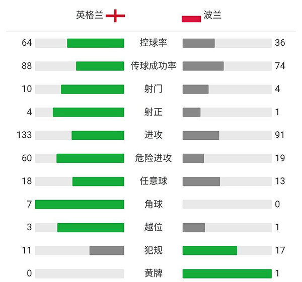 全场比赛结束,英格兰主场2-1战胜波兰。