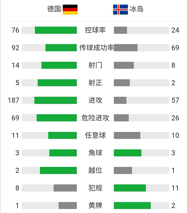 来源:直播车03-26 10:35 直播车讯:北京时间3月26日03:45,世预赛欧洲区小组赛J组第1轮,德国坐镇主场迎战冰岛。上半场,格纳布里助攻格雷茨卡闪击破门,五分钟后萨内助攻哈弗茨低射再下一城,基米希策动两粒进球。下半场,京多安贴地斩破网,格纳布里扫射中柱,哈弗茨再入一球因越位在先被吹,穆夏拉替补登场迎来德国国家队首秀。最终,德国主场3-0轻取冰岛。
