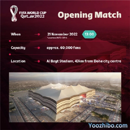 2022年世界杯的揭幕战将在阿尔贝特体育场(Al Khor City Al Bayt Stadium)进行,这座球场能够容纳6万名观众现场观赛;