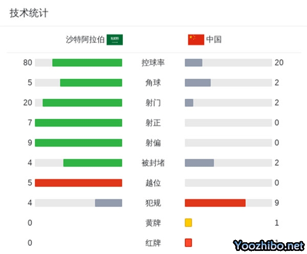 最终十人国足0-1遭沙特双杀。