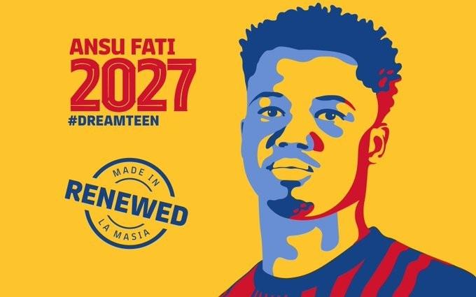 巴萨官宣了,他们在官方网站上宣布,球队和法蒂续约到2027年,而且球员的合同内附加了10亿欧元的违约金条款。法蒂只有18岁,在梅西离开之后,他接过了梅西的10号球衣,而许多巴萨球迷都希望他可以在未来接班梅西,现在巴萨和他续约就是为了长留法蒂,就是不知道法蒂在未来的表现会怎么样呢?就让我们拭目以待吧!