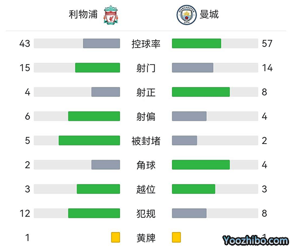 全场比赛结束,利物浦3-1战胜曼城。